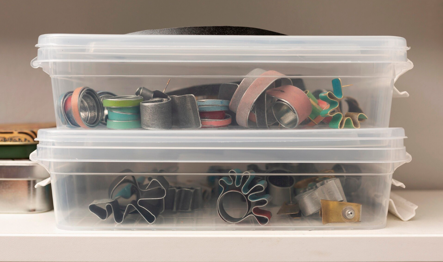 In the kitchen, these tubs are perfect for storing spices, baking supplies, pantry goods, and seasonal cookware. Clear tubs make it easy to see what’s inside, while airtight lids keep ingredients fresh.